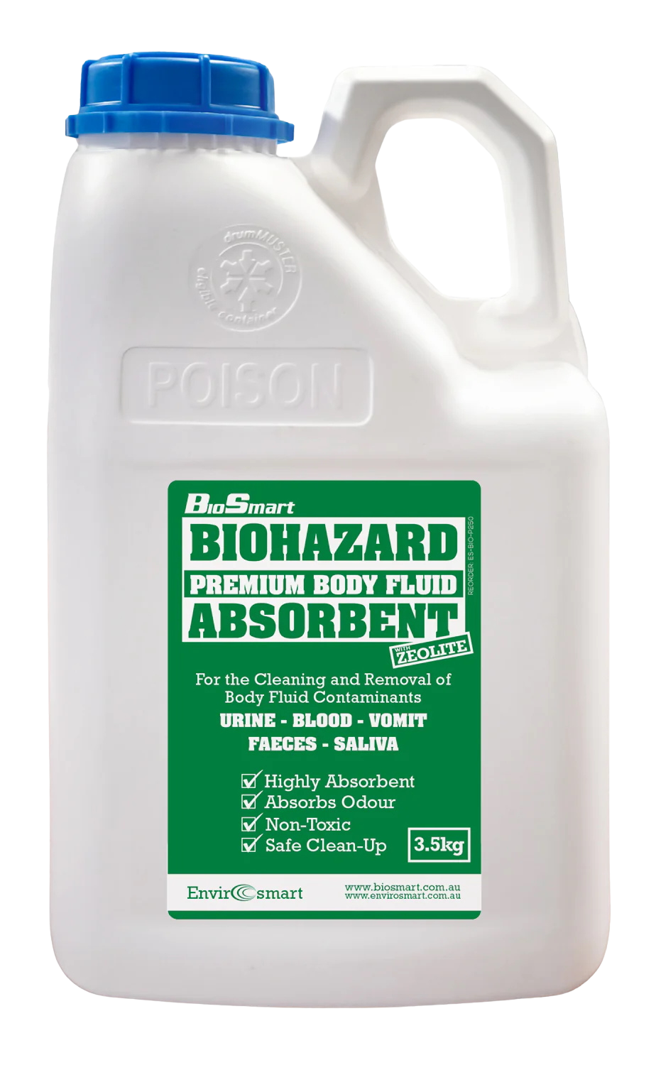 BioSmart Biohazard Premium Absorbent Powder is produced from a naturally forming inert mineral called Zeolite. Known for its ability to absorb